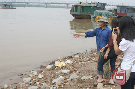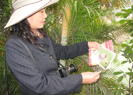 Chị Hồng Phong cho xem các bức ảnh chịp chụp được con ba ba nổi ở hồ Hoàn Kiếm ngày 9-4-2011 ( ảnh Hà Hồng)