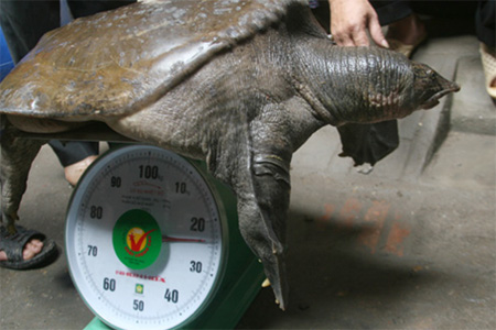Ba ba nam bộ chết ở Hồ Hoàn Kiếm ngày 13-4-2011, nặng 50 kg ( Ảnh Hồng Phong )