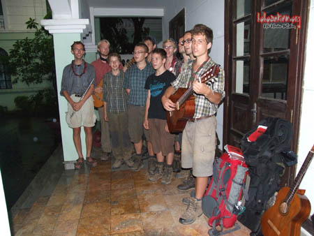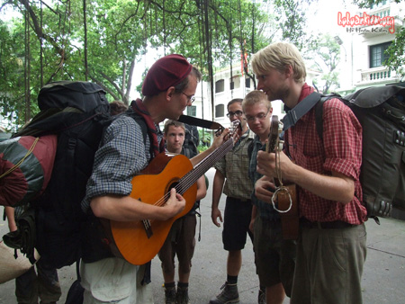 Qua trao đổi, chúng tôi được biết đây là Câu lạc bộ các bạn thanh niên yêu tiếng Đức thuộc nhiều nước ở châu Âu. Theo trưởng nhóm Benjamin Mueller ( benjamin.mueller@gmx.at ): Các bạn tự lao động để lấy tiền đi du lịch, không xin tiền bố mẹ. Thành viên nhỏ tuổi nhất trong đoàn, mới chín tuổi là Jan Howann ( jan@ollsen.de ).