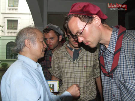 Về đến cổng Báo Nhân Dân, tôi thấy một tốp các bạn trẻ người nước ngoài đàng đứng dưới gốc đa. Đây là chuyện ngoại lệ vì khách nước ngoài không được phép vào cơ quan.