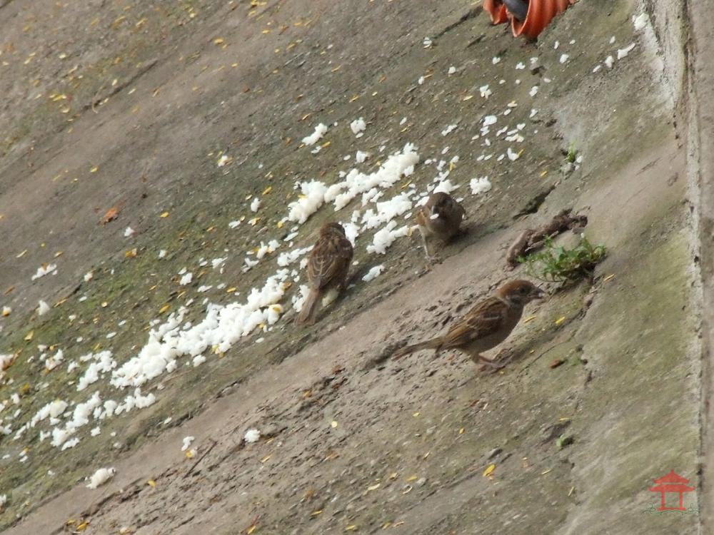 Từ khi bà Gái thay đổi thực đơn lũ chim đến đây ngày càng đông. Không chỉ cá ngóng chờ bà đến mà cả chim cũng ngóng chờ bà. Chúng đậu ở trên cành phượng. Mỗi lần bà Gái cho cá ăn, cơm, bún, mẩu bánh mì mắc trên mái nghiêng bê-tông bờ hồ, nhờ thế lũ chim lại có phần để ăn. Chúng xà xuống, đánh chén no nê....để rồi chiều hôm sau lại đậu trên cành phượng chờ bà.