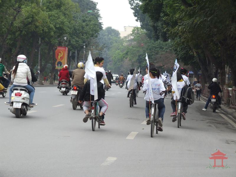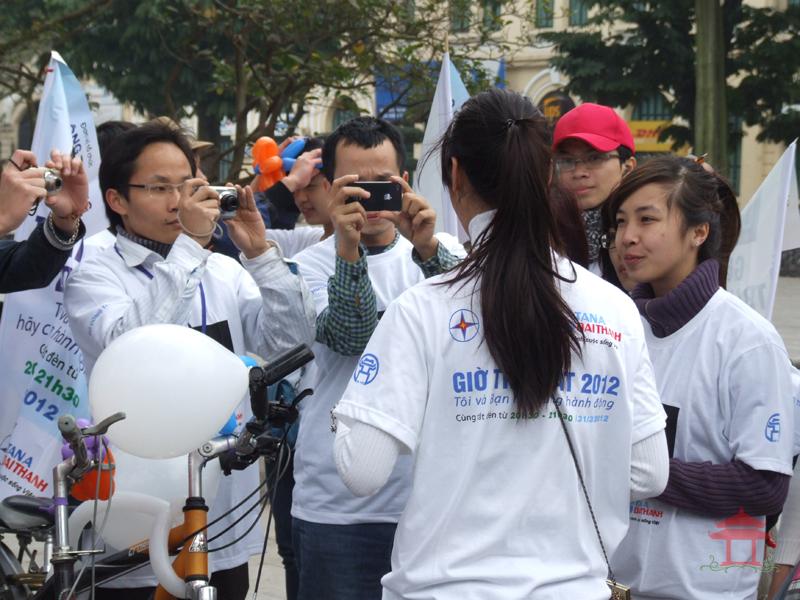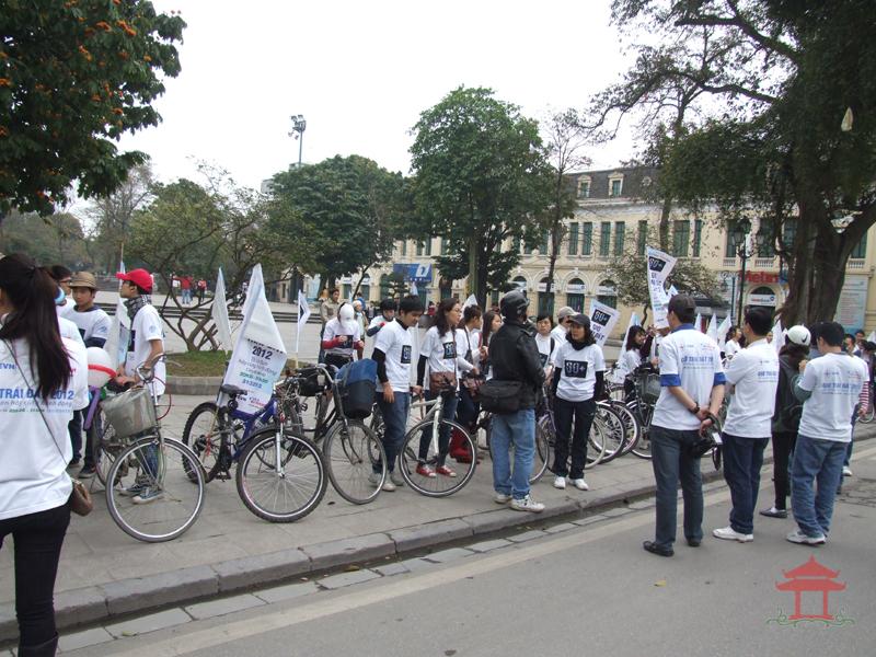 Sáng 11-3-2012, tại Vườn hoa Lý Thái Tổ chúng tôi gặp hơn 100 bạn trẻ đi xe đạp cổ vũ cho “ Giờ Trái đất 2012 “. Đoàn xuất phát từ Nhà hát Chèo Việt Nam (71 Kim Mã, Ba Đình) và đạp xe qua các tuyến đường trung tâm như Nguyễn Thái Học - Phan Bội Châu - Hai Bà Trưng - Hàng Bài – hồ Hoàn Kiếm.