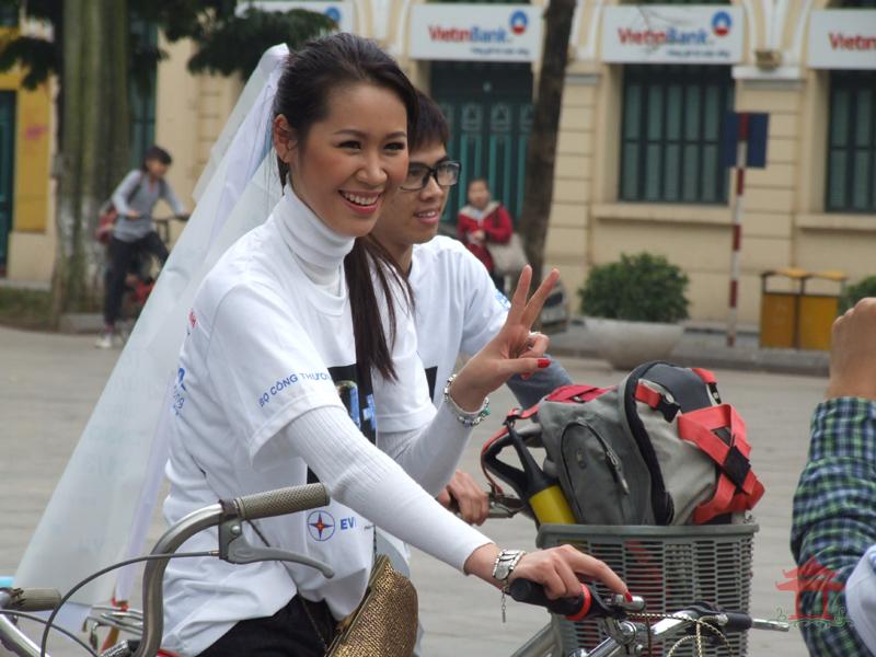 Trong thời gian đoàn tạm nghỉ tại Vườn hoa Lý Công Uẩn, các bạn trẻ đã phỏng vấn Đại sứ chương trình - Hoa hậu thân thiện Dương Thùy Linh. Cô tâm sự : “Tôi cảm thấy rất hạnh phúc khi được cùng các bạn sinh viên, tình nguyện viên tham gia đạp xe hưởng ứng chương trình Giờ Trái đất 2012 ”