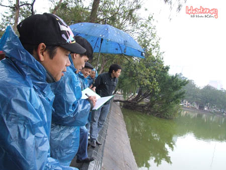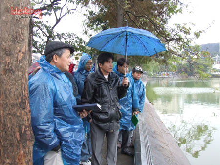 Đoàn của sở đã đến khảo sát đoạn ống nước nối vào đền Ngọc Sơn, khảo sát đường dẫn nước thải từ nhà vệ sinh ra bể phốt và đo mực nước hồ dọc theo hai đường ống