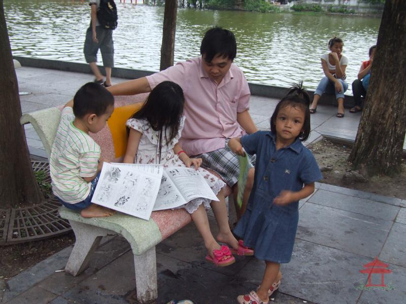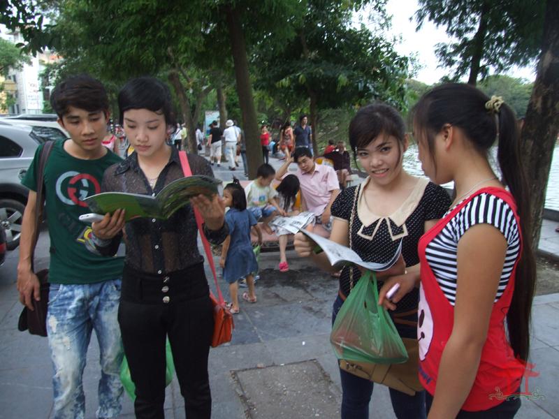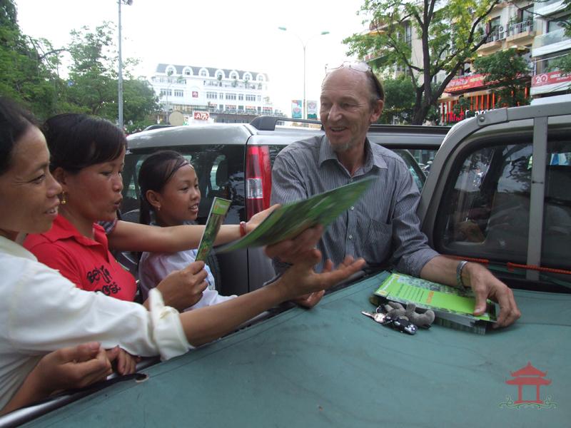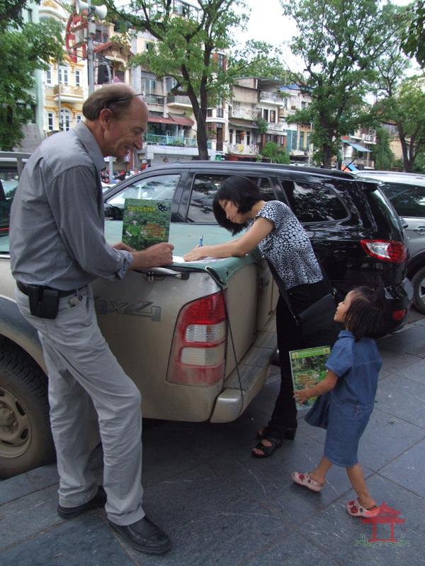Chiều 10-6-2012, đi đến đoạn đường đôi trên phố Đinh Tiên Hoàng, chúng tôi thấy một người đàn ông nước ngoài đứng cạnh một chiếc ô- tô, tay cầm một tập sách. Thấy mọi người đi qua, nhất là trẻ em ông đều đưa sách tặng. Khi chúng tôi đi qua cũng được ông tặng một cuốn sách. Đó là cuốn tài liệu tuyên truyền bảo vệ rừng – Rừng và động vật hoang dã tương lai của chúng em.