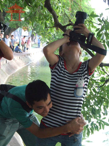 Vào ngày thứ bẩy và chủ nhật chúng tôi thấy rất nhiều người chụp ảnh đi thành nhóm với nhau. Khi phát hiện thấy một chùm hoa nào đẹp, nhất là có tia nắng chiếu vào là mọi người chen nhau chọn vị trí và “ nhả đạn “.