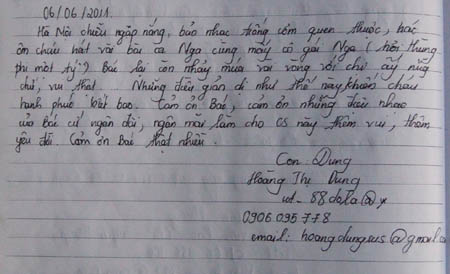 Lật giở cuốn sổ lưu bút, chúng tôi được đọc những dòng cảm nghĩ của các bạn trẻ đã từng nghe ông đánh đàn. có bạn trẻ lại ký họa cả chân dung ông khi đang kéo vi-ô-lông...