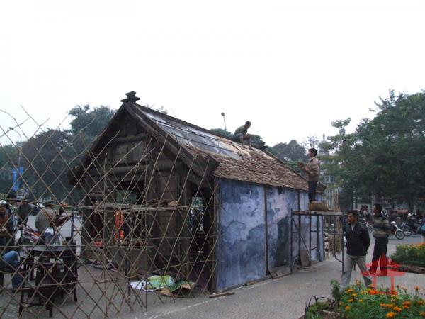 Tại khu vực tượng đài “ Cảm tử cho tổ quốc quyết sinh “ những người thợ mộc đang dựng ngôi nhà gỗ cổ, lợp mái ngói, sắp xếp câu đối. Đối diện với Điện lực Hoàn Kiếm, mấy anh thợ đang dựng chiếc cầu nổi tiểng ở Hội An .... Đó là quang cảnh các công ty, doanh nghiệp dựng các công trình của mình trong khuôn khổ Lễ hội hoa xuân năm 2012. Lễ hội được tổ chức tại hồ Hoàn Kiếm với chủ đề “ Hà Nội – Điểm hẹn phố và hoa “ . Đây là một hoạt động hưởng ứng Năm Du lịch quốc gia về “ Du lịch di sản” và chào đón xuân Nhâm thìn năm 2012. Lễ hội hoa sẽ diễn ra từ ngày 30-12- 2011 đến 2-1-2012.