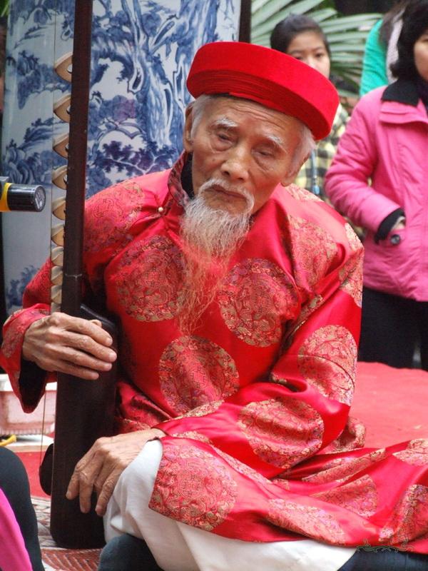 Đứng cạnh sân khấu ngoài trời, tôi đã tận mắt nhìn thấy các nghệ sĩ tài ba hát ca trù. Có lẽ nghệ sỹ Bạch Vân là nhiều tuổi nhất, các “ ả đào “ khác còn trẻ lắm, mới đôi mươi. Người được chú ý nhiều nhất đó là cụ Vũ Văn Hồng nghệ nhân đàn đáy. Cụ mặc áo đỏ đội khăn xếp đỏ. Cụ năm nay tròn 93 tuổi. Bên cạnh là cụ Nguyễn Văn Chi , 82 tuổi, người đánh trống chầu.