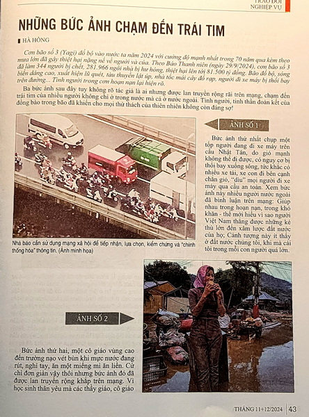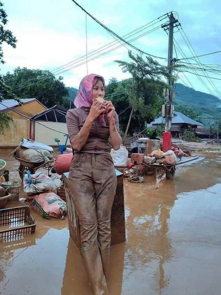 Bức ảnh thứ hai, một cô giáo vùng cao  đến trường nạo vét bùn khi mực nước đang rút, nghỉ tay, ăn một miếng mì ăn liền. Cử chỉ đơn giản vậy thôi nhưng bức ảnh đó đã được lan  truyền rộng khắp trên mạng. Vì học sinh thân yêu mà các thầy giáo, cô giáo không quản ngại khó khăn vất vả vét bùn, làm vệ sinh lớp học để đón các em nhỏ đến trường, trong khi nhà mình còn ngập nước, gặp nhiều khó khăn sau khi lũ tràn về. Nhiều nơi thầy giáo, cô giáo còn dành một phần lương của mình để mua sách, vở, bút viết, mua gạo thực phẩm nấu cơm cho các em... Một người nước ngoài bình luận trên mạng: Tôi phát hiện một điều ở Việt Nam có một ngày đặc biệt, nhiều nước không có, đó là ngày Nhà giáo Việt Nam  (20-11). Đây là ngày mà cả xã hội tỏ lòng biết ơn các thầy giáo, cô giáo đã dạy dỗ họ và con cháu họ nên người. Việc làm của các thầy giáo, cô giáo, trong bức ảnh nói trên đã đủ để cho các học sinh luôn biết ơn họ.