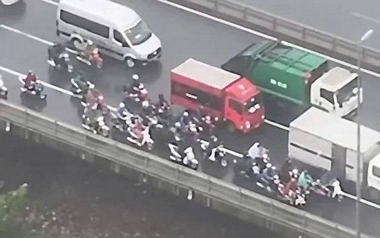 Bức ảnh thứ nhất chụp một tốp người đang đi xe máy trên cầu Nhật Tân, do gió mạnh không thể đi được, có nguy cơ bị thổi bay xuống sông, tức khắc có nhiều xe tải, xe con đi bên cạnh chắn gió, “dìu” mọi người đi xe máy qua cầu an toàn. Xem bức ảnh này nhiều người nước ngoài đã bình luận trên mạng :  Giúp nhau trong hoạn nạn, trong khó khăn - thế mới hiểu vì sao người Việt Nam thắng được những kẻ thù lớn đến xâm lược đất nước của họ; Cảnh tượng này ít thấy ở đất nước chúng tôi, khi mà cái tôi trong mỗi con người quá lớn.