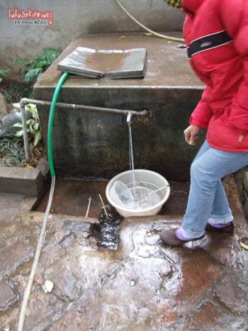 Nước sinh hoạt của cán bộ công nhân viên quản lý đền: rửa ấm chén, bát đĩa... không qua bể xử lý được dẫn xuống hồ