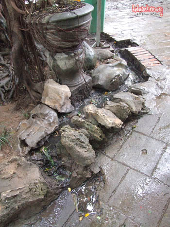Tại đền Ngọc Sơn chúng tôi phát hiện một đường thoát nước nửa kín, nửa hở. Đường thoát nước này chạy từ bể xuống thẳng hồ Hoàn Kiếm.