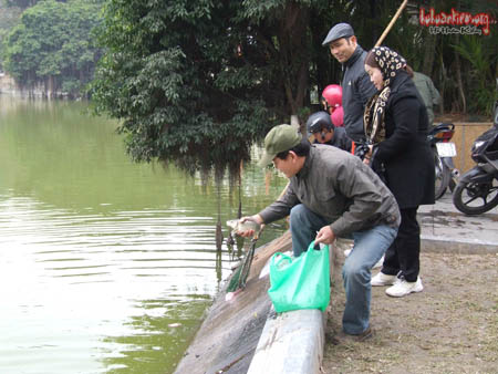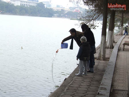 HOHOANKIEM.ORG | Ngày 23 tháng chạp ( tức 26-1-2011 ), dùng vợt để giúp mọi người phóng sinh cá được “êm”