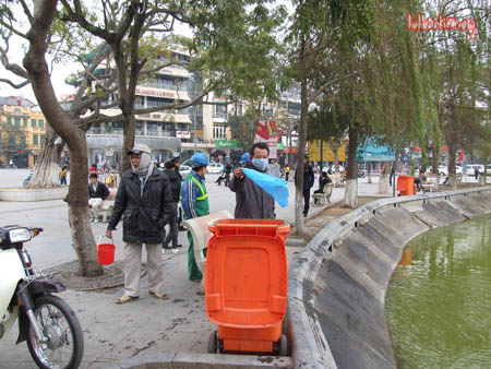 Công ty URENCO cử hai người thường trực ở đây để dọn vệ sinh. Nhân viên Đội An ninh trật tự hồ Hoàn Kiếm cũng có mặt tại các khu vực mọi người hay phóng sinh cá xuống hồ để nhắc nhở mọi người giữ gìn vệ sinh chung.