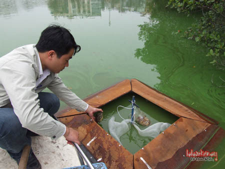 Phóng sự ảnh - Đặt lồng bắt rùa tai đỏ tại khu vực đền Ngọc Sơn