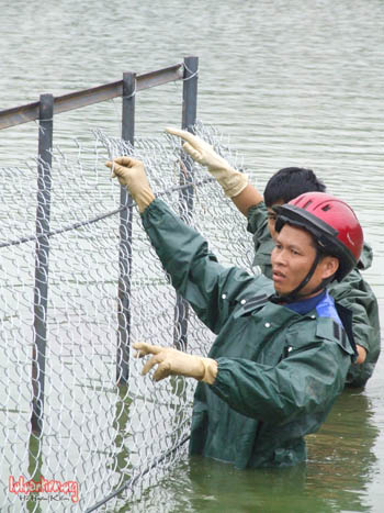 Khoảng cách giữa hai tấm lưới chắn là mười mét. Đây là việc làm cần thiết, phải triển khai xong trước khi dẫn Cụ Rùa về khu vực này. Quan sát thực tế chúng tôi thấy các dầm bê – tông chung quanh tháp không được đập bỏ, vẫn giữ nguyên. Như vậy Cụ Rùa muốn bò lên tháp vào mùa nước cạn chỉ có bốn cửa theo bốn hướng./.