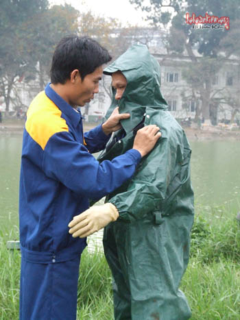 Ngày 2-3-2011, cán bộ kỹ thuật của sở thi công khu vực đặt bể bơi thông minh và lưới chắn (được bọc vải bạt). Để bảo đảm an toàn khi thi công dưới nước, cán bộ kỹ thuật phải mặc quần áo đặc chủng.