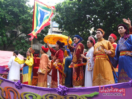 Khung cảnh hồ Tả Vọng vào ngày 15-8-1428 khi Vua Lê Lợi trả gươm cho Rùa vàng