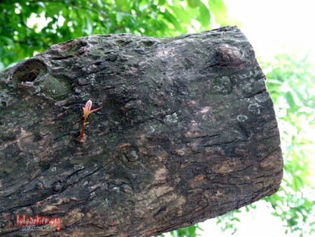 Thật là vui, ngày 24-4-2011, chúng tôi phát hiện thấy trên thân cây lộc vừng bị gãy đã nảy ba mầm. Mầm gần chỗ bị cưa phát triển nhanh hơn, cành cao chừng 20 cm. Mầm gần phía gốc thì mới mọc cho nên còn nhỏ. Thế là thân cây lộc vừng bị gãy đã mọc mầm, không còn nguy cơ bị thối mục nữa, tuy không có dáng đẹp như trước đây.