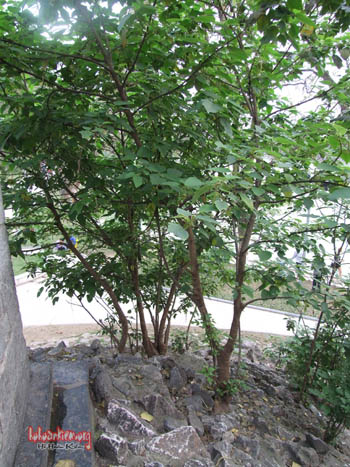 Ngày 28 -6-2011, đi đến cổng Đền Ngọc Sơn, chúng tôi thấy bụi cây dại mọc um tùm trên núi đá, dưới chân Tháp Bút đã bị cưa.