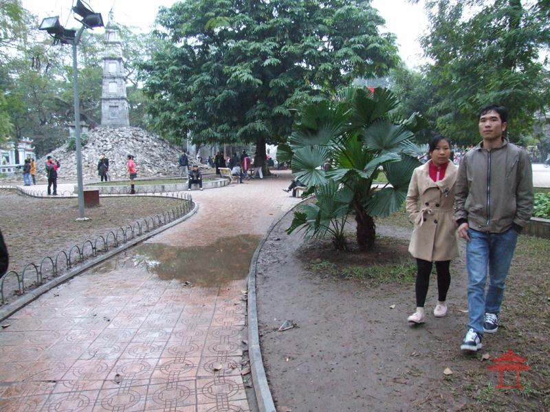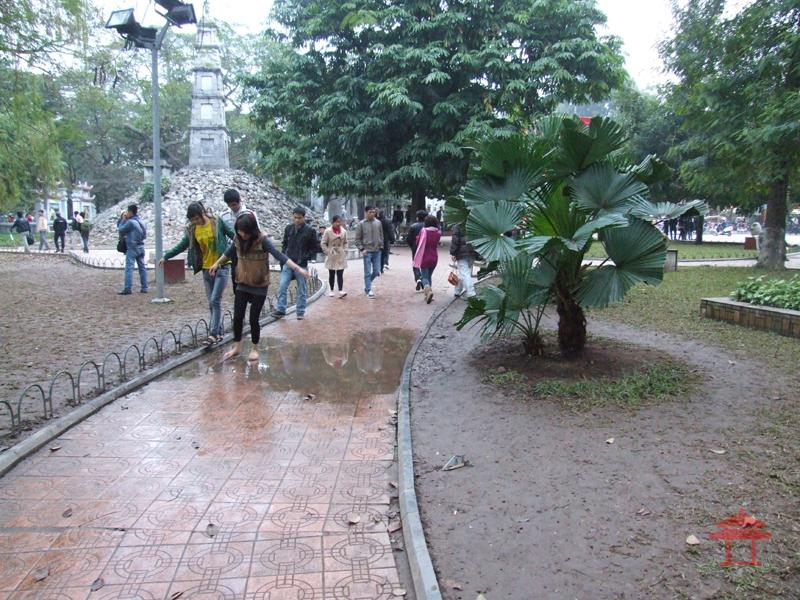 Cứ sau mỗi trận mưa là đường có vũng nước. Điều đó đương nhiên rồi, nhất là đường đất ở nông thôn. Nhưng ở đây vũng nước xuất hiện ngay trên đường đi chung quanh hồ Hoàn Kiếm. Chỗ gần Tháp Bút. Không chỉ mới xuất hiện mà có cách đây 13 năm kể từ ngày đường chung quanh hồ được lát gạch hoa vào năm 1999.