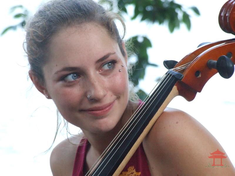Đó là hai nghệ sĩ đánh đàn vi-ô-lông sen và ghi ta. Hai nghệ sỹ xinh đẹp đến từ đất nước Ô-Xtrây- li-a. Họ vừa đàn vừa hát do vậy thu hút được rất nhiều người đến xem. Sau mỗi bản hòa tấu, bài hát, mọi người lại vỗ tay tán thưởng.