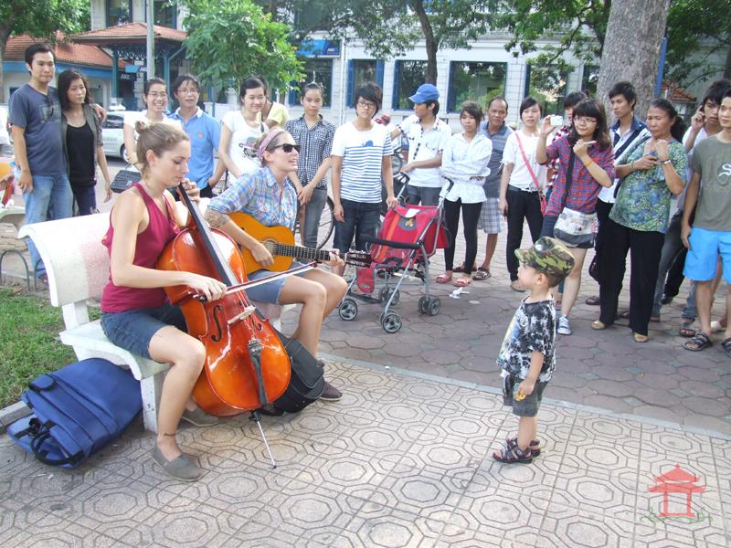 Ngày chủ nhật, 3-6-2012, đi đến đoạn đối diện cây đa báo Nhân Dân, chúng tôi nhìn thấy một đám đông đang đứng chung quanh hai người đang ngồi ở ghế. Đến gần chúng tôi nhìn thấy đó là hai nghệ sỹ vừa đàn vừa hát.