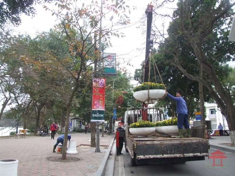 Từ sáng, chúng tôi đã thấy hằng chục công nhân, cán bộ của Công ty Chiếu sáng đô thị, ra treo đèn dây trên các cành cây dọc theo phố Lê Thái Tổ. Công ty Công viên cây xanh chuyển các chậu hoa cảnh bằng xe có cần cẩu. Công nhân Công ty Môi trường đô thị vẫn cần mẫn quét rác cho đường phố sạch đẹp.