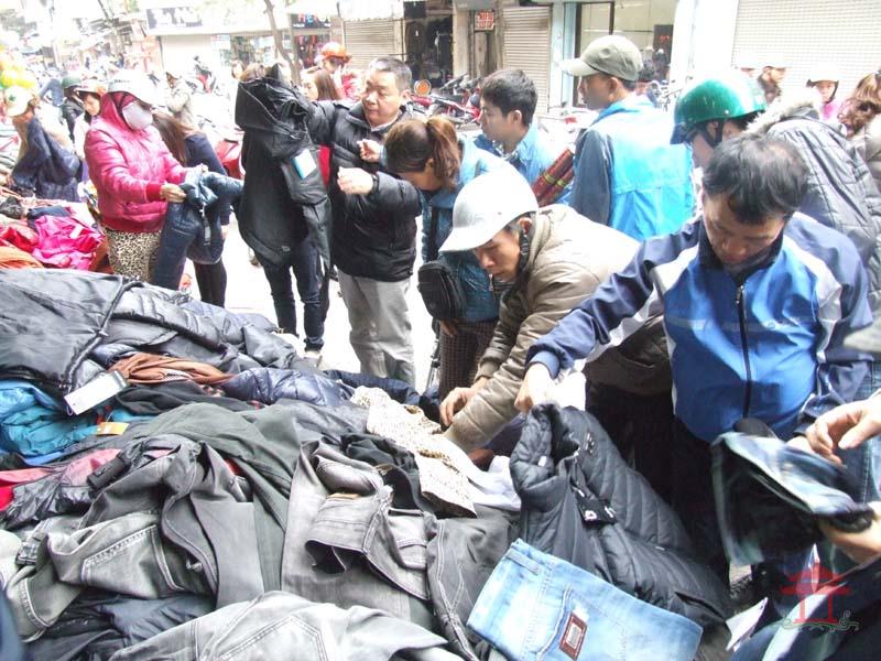 Đi đến phố Hàng Đào, Hàng Đường, Lương Văn Can... Chúng tôi thấy cảnh tượng khá nhộn nhịp. Các cửa hàng đua nhau xả hàng để thu vốn về. Chúng tôi hỏi một anh thanh niên vừa mua chiếc quần bò: