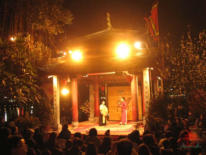 Năm nay là năm thứ hai chúng tôi may mắn có mặt tại đền Ngọc Sơn để đón Tết. Chương trình biểu diễn của các diễn viên Nhà hát chèo Hà Nội đã đưa người xem trở về với giai điệu thân quen , truyền thống qua những tích chèo cổ, lên đồng.