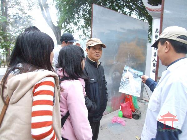 Cứ vào dịp trước Tết Nguyên đán, đền Ngọc Sơn thường được tu bổ. Cuối năm 2012, đền Ngọc Sơn được tu bổ theo định kỳ. Ngày 25-1-2013, khi có mặt tại lớp cổng thứ hai, chúng tôi thấy mấy họa sỹ đang cạo lớp sơn trên mình con hổ ở bảng hổ.