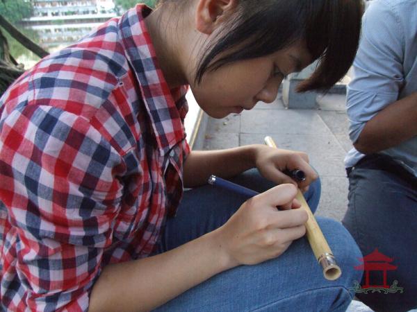 Chờ cô gái thổi sáo xong, chúng tôi hỏi từ đâu đến và sao lại ngồi ở đây ? Cô gái đó tên là Nguyễn Mai, quê ở Yên Bái. Nguyễn Mai cho biết: Sáo nứa do chính tay cháu làm và cháu bán với giá 50.000 đồng/ chiếc. Còn chiếc sáo mèo này giá 500.000 đồng. Nhưng có ai mua cháu cũng không bán vì là vật kỷ niệm của cháu.