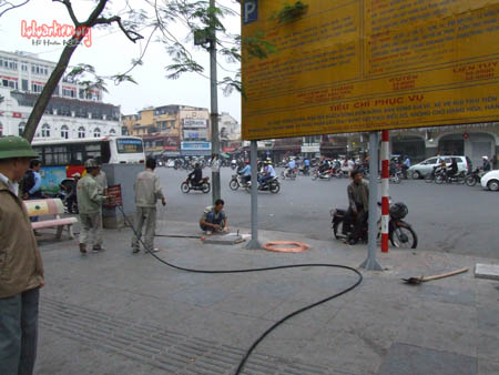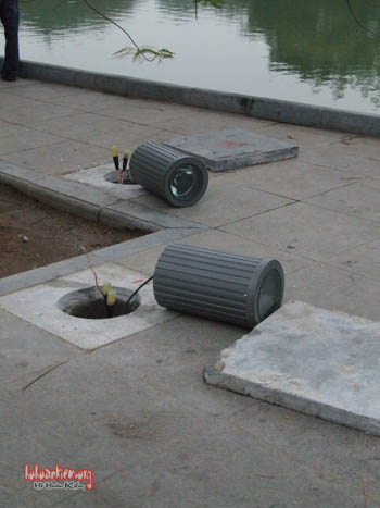 Những ngày đầu tháng 12-2010, đi chung quanh hồ Hoàn Kiếm chúng ta nhìn thấy nhiều tốp thợ đang cậy đá lát vỉa hè khu vực gần Nhà hàng Thủy Tạ để lắp hệ thống đèn ngầm chiếu sáng cây. Theo chúng tôi, đáng nhẽ hệ thống đèn trang trí chung quanh hồ phải hoàn thành trước ngày Đại lễ kỷ niệm 1000 năm Thăng Long – Hà Nội.