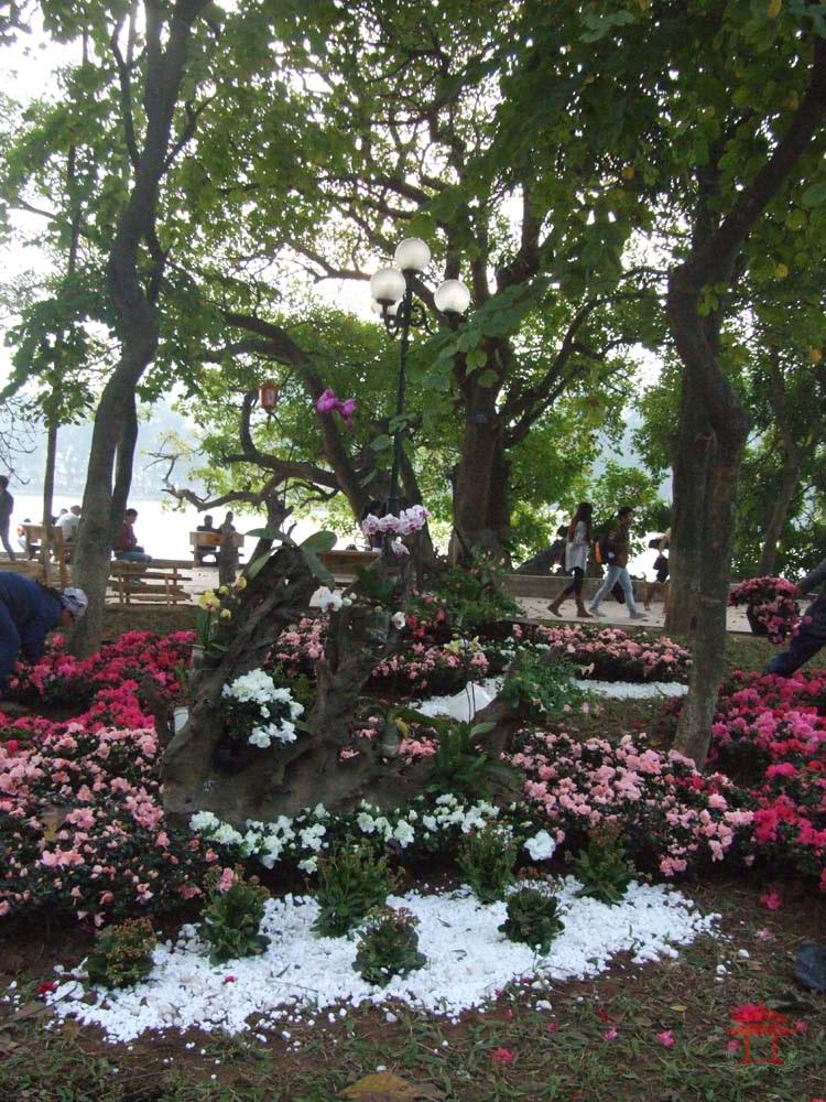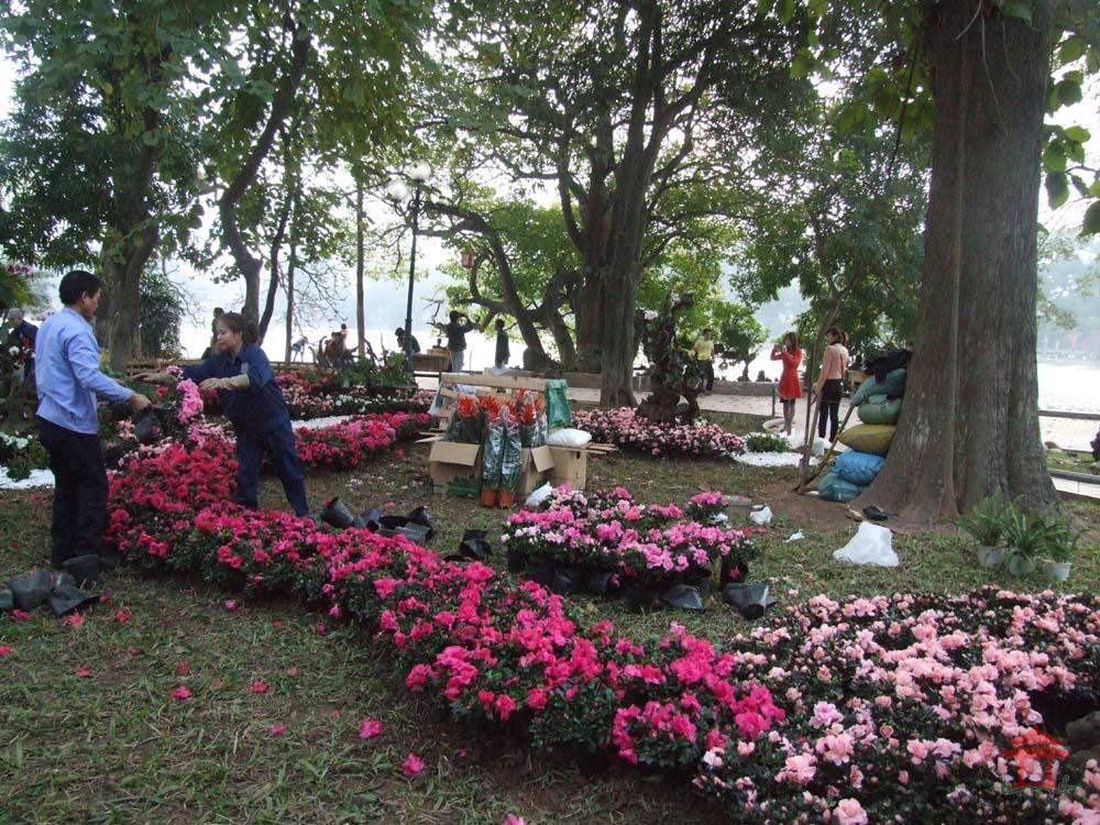 Hoa Đà Lạt, hoa nhập khẩu không còn để trên vỉa hè phố Đinh Tiên Hoàng, Lê Thái Tổ như trước nữa mà được đẩy lùi vào các bãi cỏ bên trong. Nhất là bãi cỏ dọc phố Đinh Tiên Hoàng đoạn đối diện Công Ty Điện lực Hoàn Kiếm.