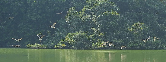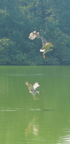 Có lúc hàng chục con chao liệng cùng một lúc cảnh tượng này làm chúng tôi liên tưởng như đàn cò bay ở "vương quốc cò" Thung Nham thuộc tỉnh Ninh Bình. Đúng là đất lành cò đậu. Chúng kéo đến đây ngày càng đông vì nguồn thức ăn dồi dào và không bị ai "làm phiền".