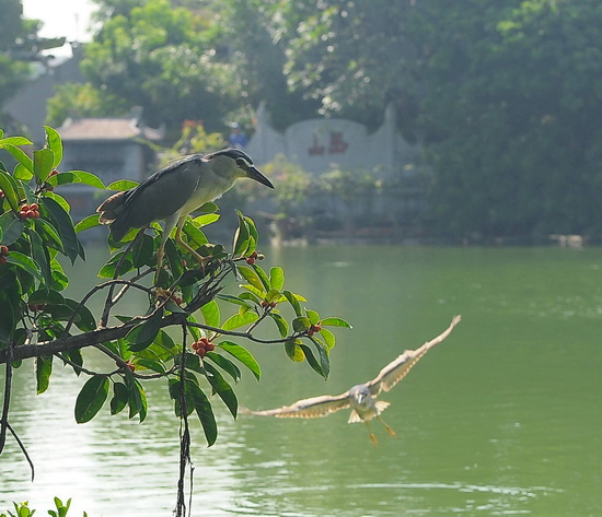 Những ngày cuối tháng 10-2025, đến Hồ Gươm chúng tôi bắt gặp những đàn cò xanh chao liệng trên bầu trời Hồ Gươm. Nếu trước đây có vài ba con thì nay hơn 50 con. Chúng thường đỗ trên các cây si khu vực đường đôi Đinh Tiên Hoàng, đầu hồi bên phải nhà hành Thủy Tạ.
