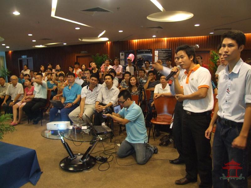 Chiều 21-7-2012, đi chung quanh hồ Hoàn Kiếm chúng tôi có một cảm giác vừa vui, vừa buồn. Vui là trên bầu trời xanh thẳm kia, có một vệ tinh nhỏ, chỉ nặng 1kg, do các nhà khoa học trẻ của Việt Nam thiết kế chế tạo, được tên lửa đẩy của Nhật Bản đưa vào vũ trụ lúc gần 10 giờ sáng nay. Trong khối vệ tinh nhỏ đó có một lá cờ tổ quốc. Trong không gian bao la của vũ trụ ấy có lá cờ của tổ quốc. Các bạn trẻ đó đã làm cho chúng ta vinh dự và kiêu hãnh. Tôi đã chứng kiến buổi tường thuật trực tiếp buổi phóng vệ tinh đó. Xin kể với các bạn khung cảnh buổi tường thuật nói trên, tại tầng 13 của tòa nhà FPT.