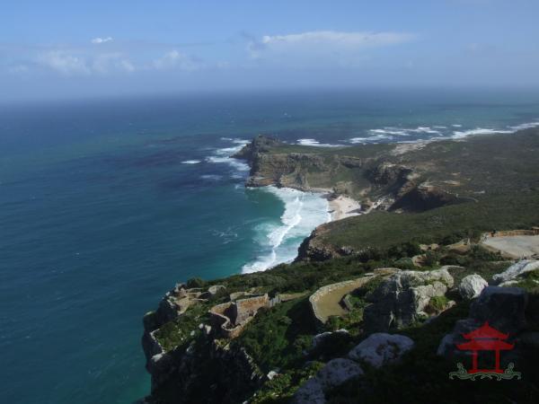 Từ thành phố Cape Town đi chừng 30 km chúng tôi tới mũi Hảo Vọng. Để nhìn toàn cảnh mũi Hảo Vọng chúng tôi phải đi xe nâng lên ngọn núi xây dựng ngọn hải đăng. Đứng ở đây chúng tôi luôn bị xô đẩy bởi từng đợt gió mạnh từ biển Đại tây dương và Ấn độ dương ào tới. Thật thú vị khi ngay dưới chân ngọn hải đăng là một chiếc cột chỉ các hướng và khoảng cách đến những vùng đất khác nhau của thế giới: NEW YORK 12. 541 km; SYDNEY 11. 642 km; AMSTERDAM 9.635 km; LON DON 9.623 km; RIO DE JANEIRO 6.055 km... Và thật là tiếc cho chúng tôi khi đến đây do mải chụp ảnh cho nên không mua được một món quà lưu niệm thật ý nghĩa: lọ nước nhỏ hòa chung nước biển Đại Tây Dương và Ấn Độ Dương. Biết bao giờ lại được trở lại mảnh đất này !