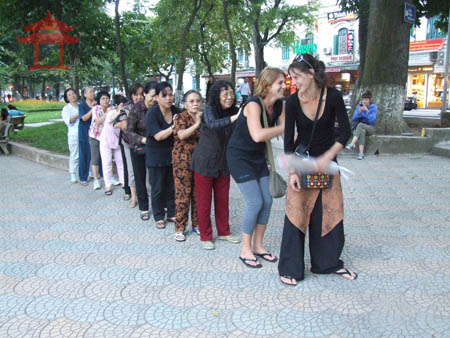 Chiều 9-11-2011, chúng tôi thấy hai cô gái đứng thành hàng với những người tập thể dục bên hồ Hoàn Kiếm đoạn đối diện với Nhà hàng bốn mùa. Họ cùng đấm, xoa lưng như mọi người. Họ hòa với cộng đồng như người địa phương vậy. Họ làm như vậy bởi họ tự tin vào khả năng và sự hiểu biết của mình.