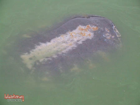 Sáng 23-9, khoảng 9 giờ 30 phút chúng tôi lại thấy Cụ nổi ở khu vực Nhà hàng Thủy tạ. Cụ bơi sát lan can và nổi. Chúng tôi nhìn rõ vết thương trên mai ( phía đầu ) đã lan rộng. Nấm mốc trên mai hình giống như con cá. Cùng quan sát Cụ nổi sáng nay với chúng tôi có PGS Hà Đình Đức.