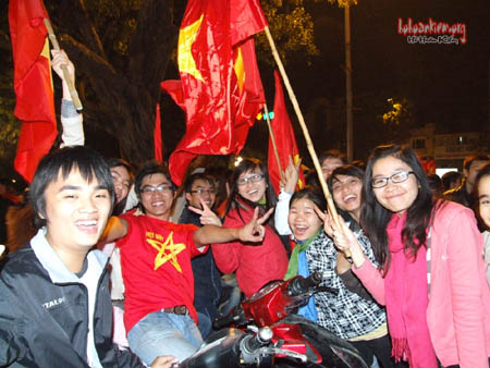 Ăn mừng chiến thắng bóng đá tối tối ngày 12-08-2010 tại quảng trường Đông Kinh Nghĩa Thục