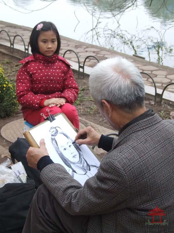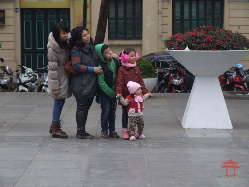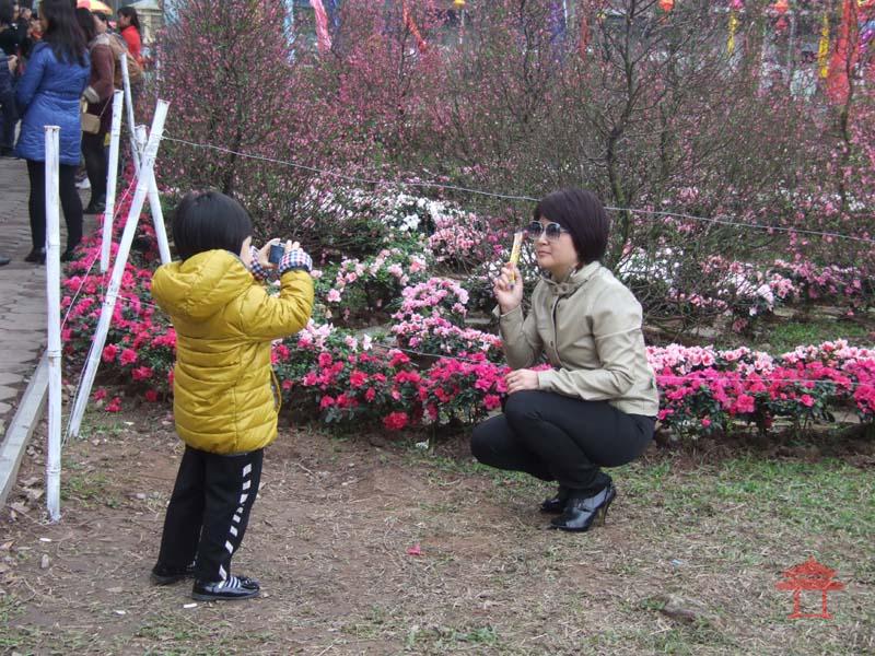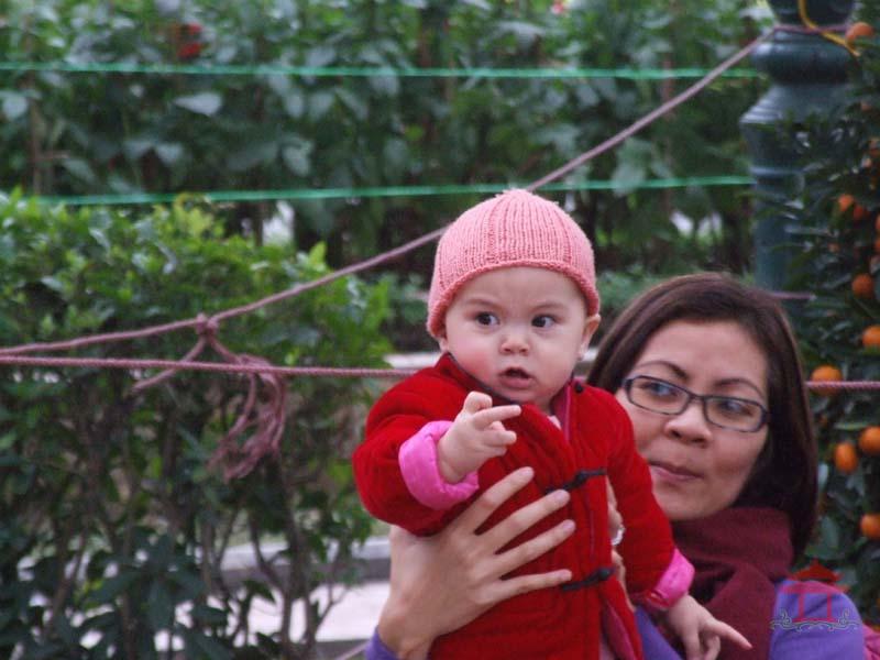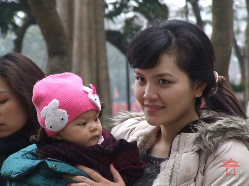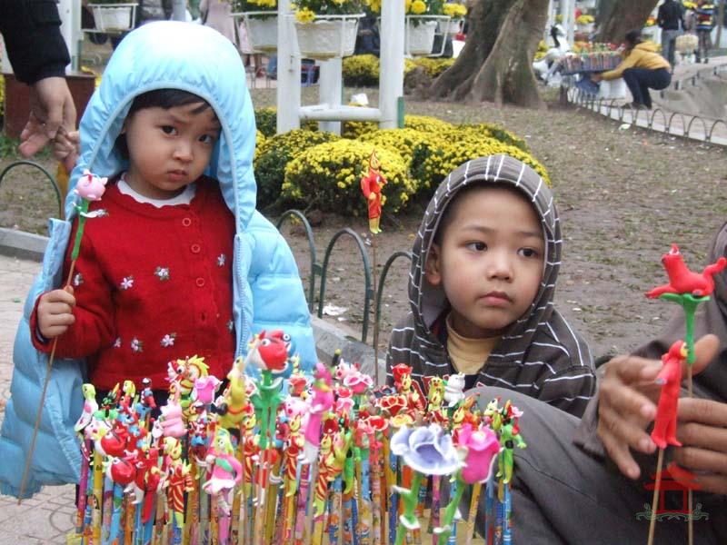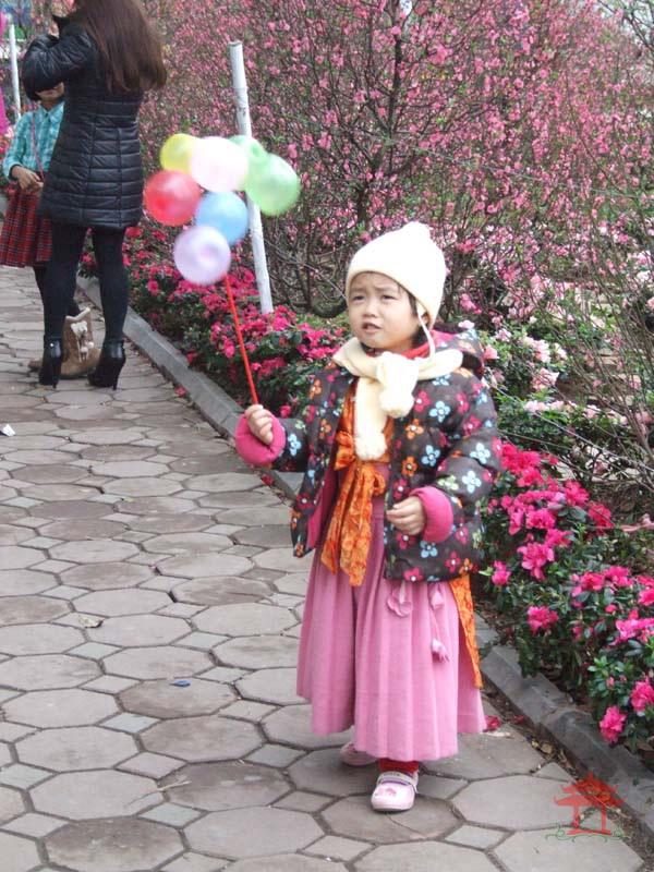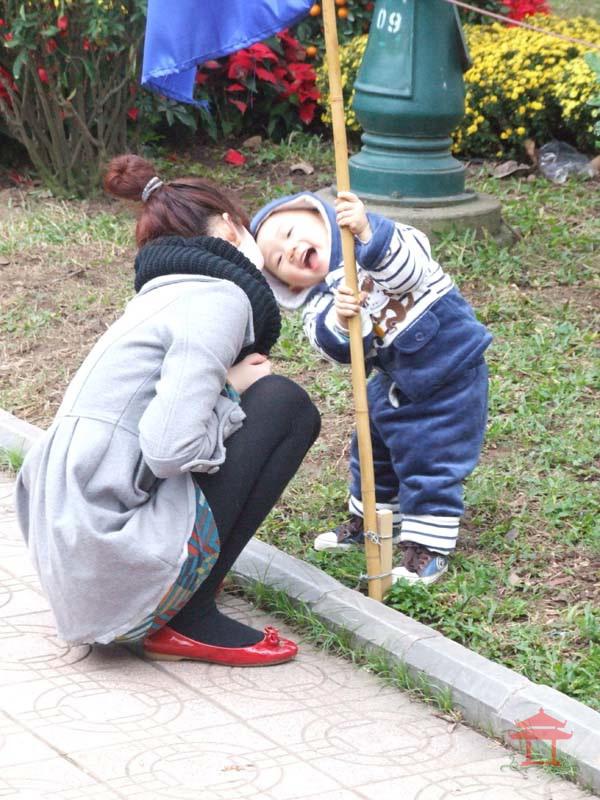 Hoa và lá tạo nên mầu sắc cho mùa xuân. Trẻ con làm cho mùa xuân thêm sống động và tươi vui. Trước cổng đền Ngọc Sơn những ngày đầu năm Quý Tỵ này có cả hoa và trẻ con. Mùa xuân ở đây tràn đầy nhựa sống và tiếng cười của cô nhóc, cậu nhóc.