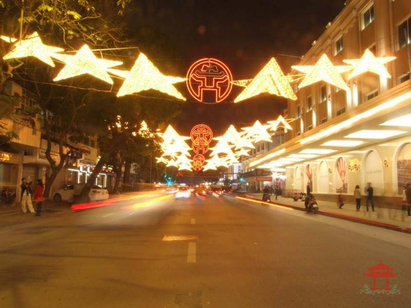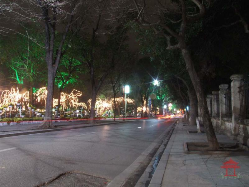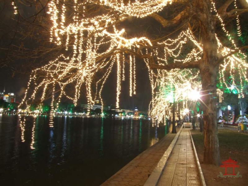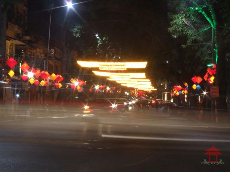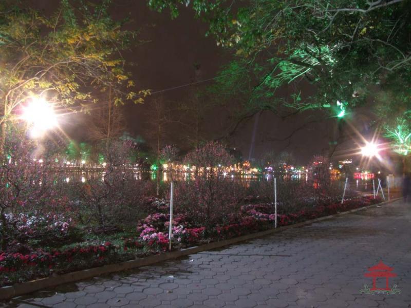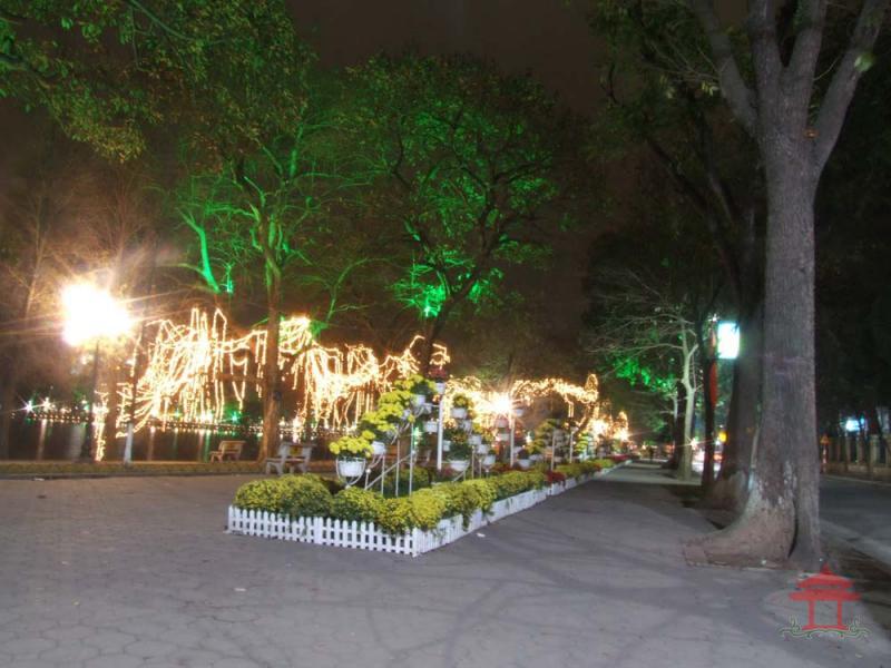 Tết năm Quý Tỵ hồ Hoàn Kiếm được trang hoàn lộng lẫy bởi đèn và hoa. Để chụp cảnh đèn trên phố chúng tôi phải mất hai, ba tối đi sáng tác ảnh mà vẫn thấy “ thòm thèm “ . Muốn chụp ảnh đẹp phải chờ cho lượng người lưu thông trên đường là ít nhất. Như vậy chỉ có chụp vào lúc nửa đêm.