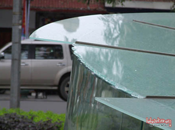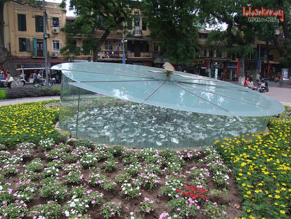 Trước đó trên mạng hohoankiem.org chúng tôi đã thông tin về một đoạn của đồng hồ thủy tinh bị vỡ lúc 16 giờ 30 phút ngày 1-5-2011. Chúng tôi có hỏi một số cán bộ Đội An ninh trật tự hồ Hoàn Kiếm vì sao kính đồng hồ bị vỡ, không ai biết. Sau đó một tháng tấm kính vỡ nói trên được thay mới.