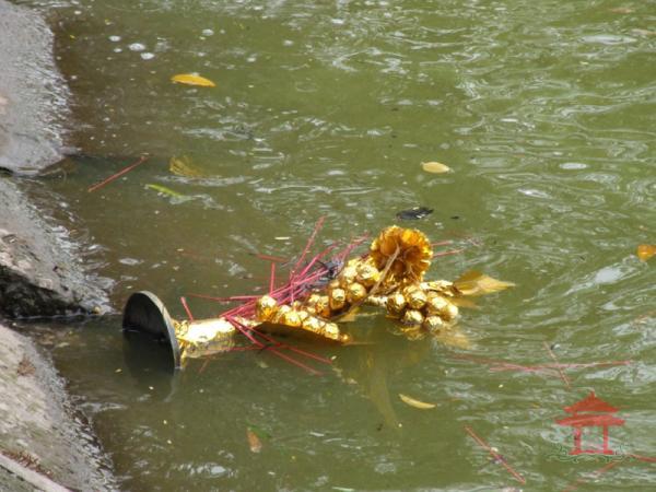 Tuy nhiên có một vài người vô ý thức vẫn vứt cả túi ni-lông, đồ thời cúng xuống hồ. Có người còn vứt tiền xuống hồ. Ngay tức thì đã có người cầm que khều tiền lên.