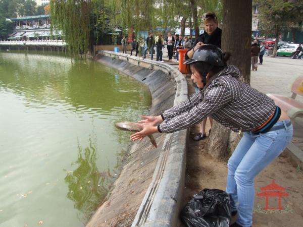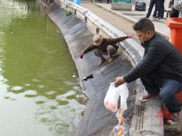 Cũng giống như nhiều năm trước vào ngày 23 tháng chạp, ngày ông Công ông Táo về trời, chúng tôi lại có mặt tại hồ Hoàn Kiếm để xem mọi người đến đây phóng sinh cá, rùa...