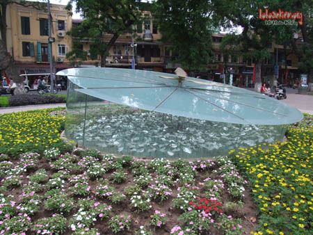 Những ngày tháng năm này, nếu đi đến vườn hoa đầu phố Hàng Khay các bạn sẽ thấy chiếc đồng hồ “ thủy tinh “ bị vỡ mất một mảnh.