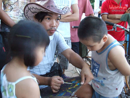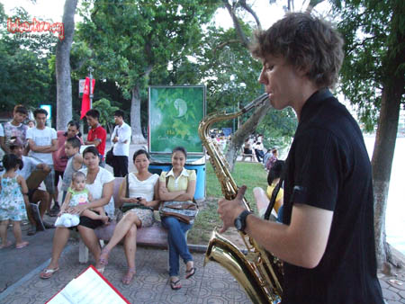 Chiều 28 -7-2011, đi đến khu vực đối diện Ngân hàng ANZ ( phố Lê Thái Tổ ), chúng tôi thấy mọi người đứng thành vòng tròn để xem một bạn thanh niên người nước ngoài thổi kèn Sắc-sô-phôn. Tên của người thanh niên đó là Rémi ( remifermentin@gmail.com ). Một học sinh người Pháp.