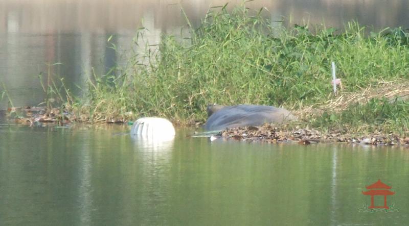 Rùa hồ Hoàn Kiếm bò lên Tháp Rùa đúng vào ngày rằm tháng giêng